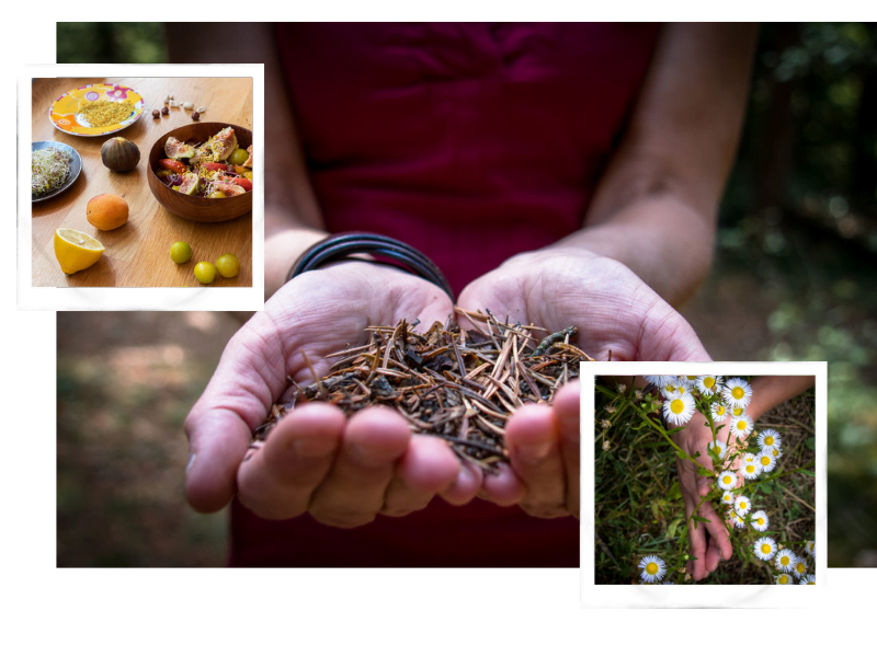 En 2006, ma seconde grossesse m’a poussée à me questionner sur les effets secondaires des médicaments et de leurs conséquences sur mon corps et sur celui de mon enfant. A cette époque, les récents scandales des laboratoires n’avaient pas encore éclaté. Chimiste, curieuse, amatrice de randonnées, j’ai commencé à m’intéresser aux plantes, champignons, à leurs propriétés médicinales, principes actifs. J’ai transformé ma cuisine en “mini-labo” où pour notre usage familial je continue à faire sirops, tisanes, élixirs, macérats de bourgeons.